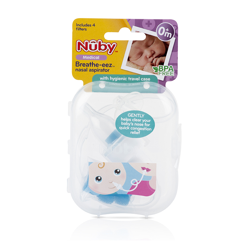 - Bộ sản phẩm hút mũi Nuby được thiết kế với đầu hút silicon siêu mềm nên không làm đau mũi bé.